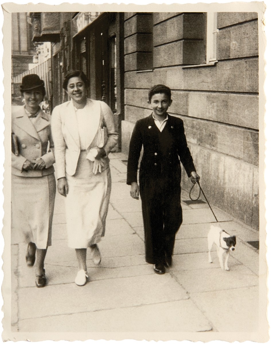 Fira Mełamedzon, jej przyjaciółka Inga Witkowska oraz Jerzyk Dymant, kuzyn Firy z Brzezin na Al. Marcinkowskiego przed budynkiem Banku Polskiego (obecnie NBP). Poznań, sierpień 1937